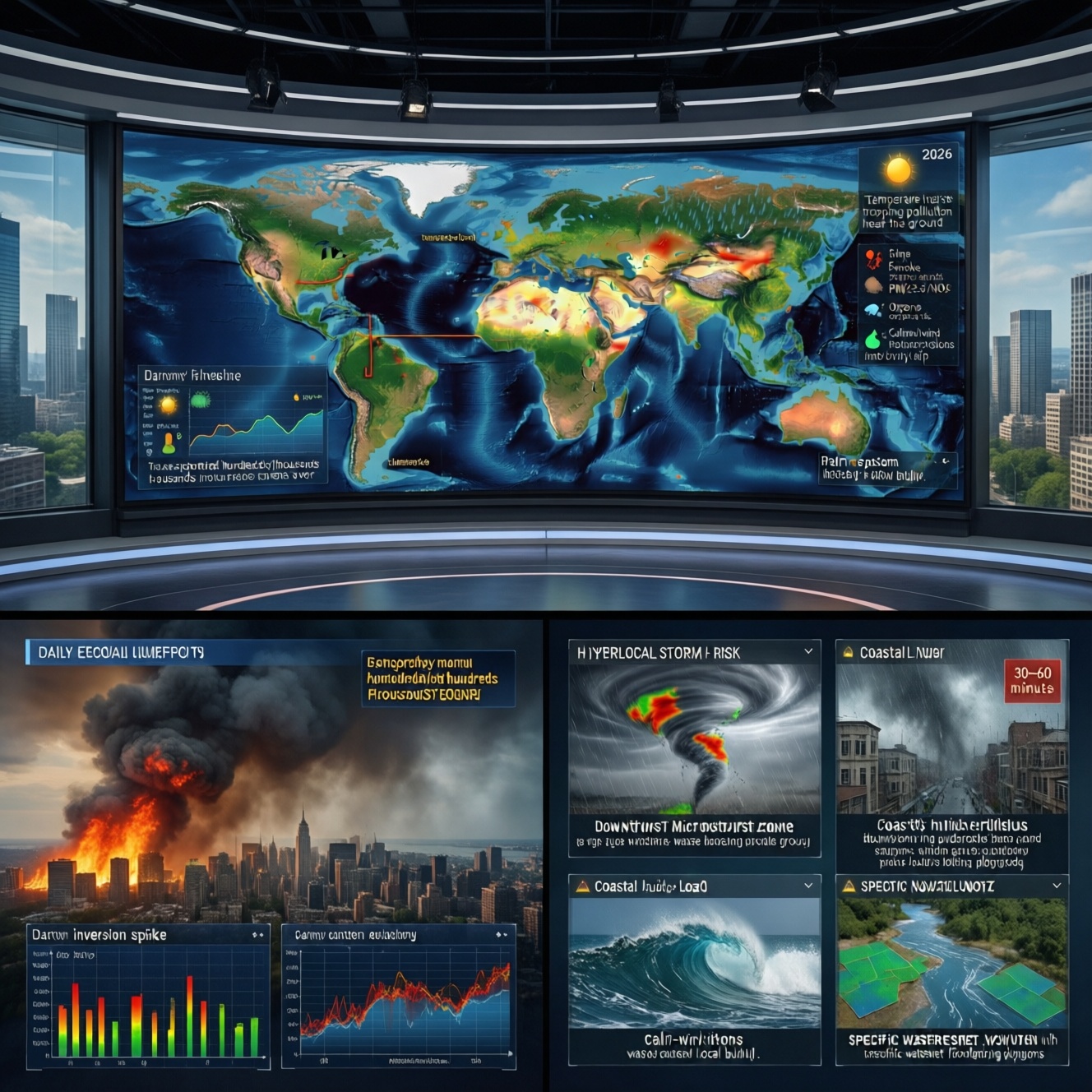 Погода перестала быть нейтральным фоном: в 2026 году прогноз погоды всё чаще читают вместе с данными о дыме, пыли, озоне и гидрологии. Причина простая: один и тот же атмосферный процесс одновременно управляет и осадками, и переносом загрязняющих примесей. Температурная инверсия «запирает» NO₂ и PM2.5 у земли, фронтальные системы смывают аэрозоль в виде «грязных» осадков, а штиль ускоряет локальное накопление выбросов. Поэтому современная сводка — это уже не только изобары и осадки, а связка «метеодинамика + химия атмосферы + риски для людей и инфраструктуры».