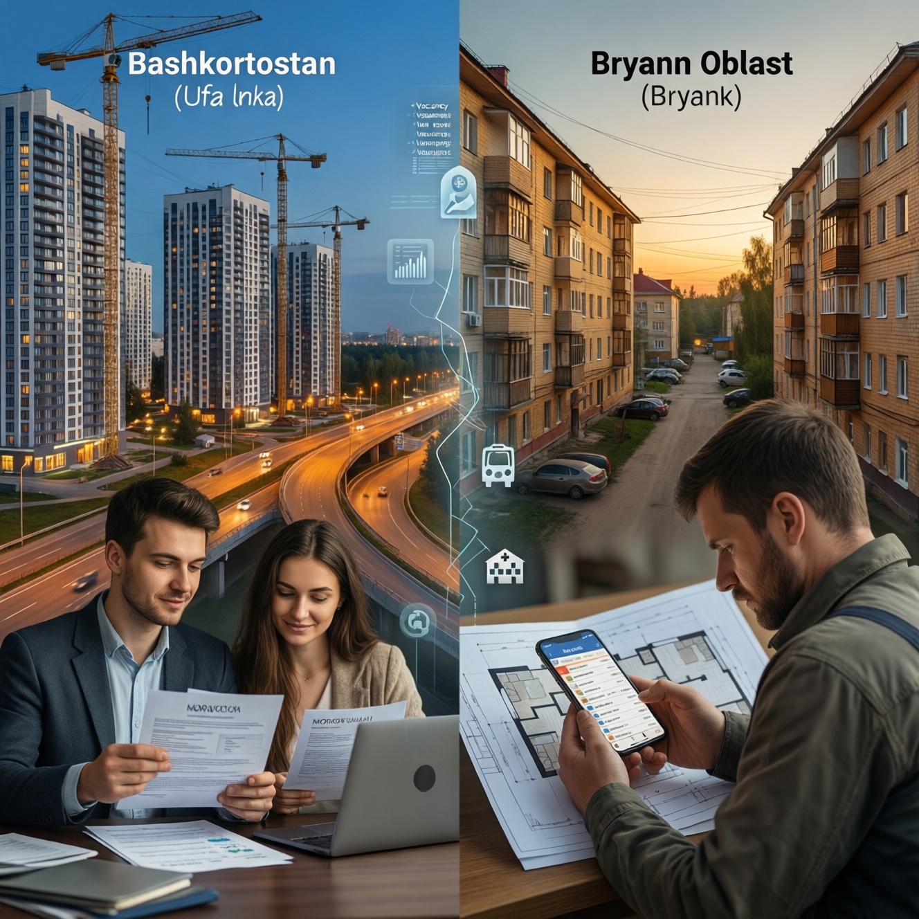 Башкортостан и Брянщина разные по масштабу и ритму, но у людей запрос одинаковый: предсказуемая работа и понятное жильё. Поэтому интерес к рынку труда и к новостройкам растёт синхронно — и в разговорах, и в поиске, и в реальных сделках.