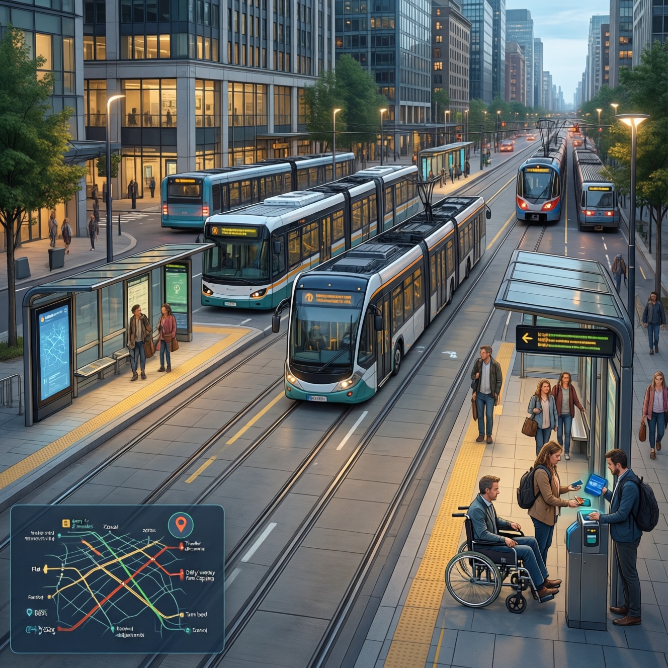 Сегодня обновление общественного транспорта — это не только покупка новых автобусов. Это, скорее, пересборка сервиса. С одной стороны — техника: низкопольные салоны, кондиционирование, системы подсчёта пассажиропотока, энергоэффективные двигатели или электропривод. С другой — инфраструктура: приоритет на перекрёстках, выделенные полосы, остановки с подсветкой и навигацией, депо и зарядные станции.